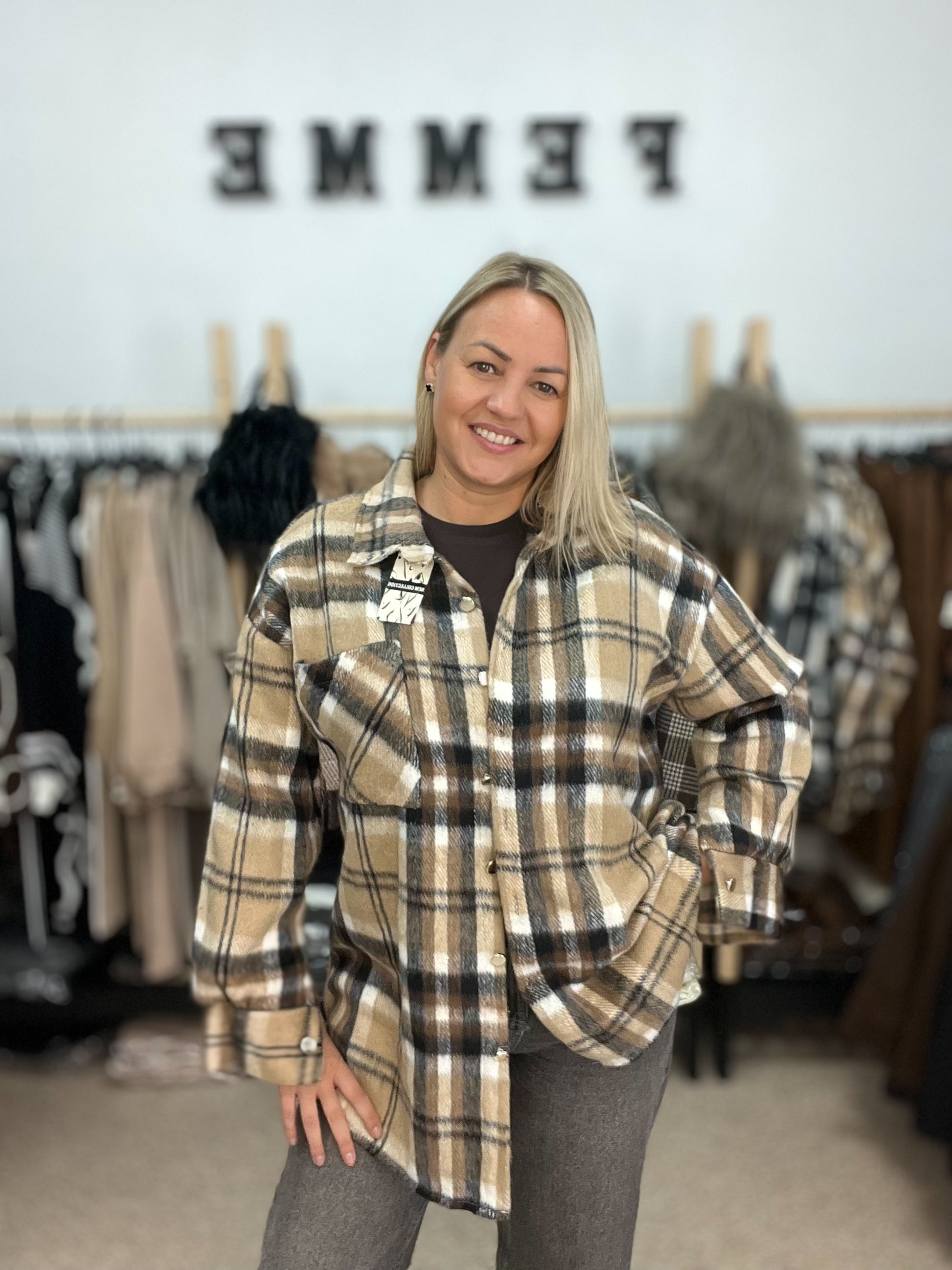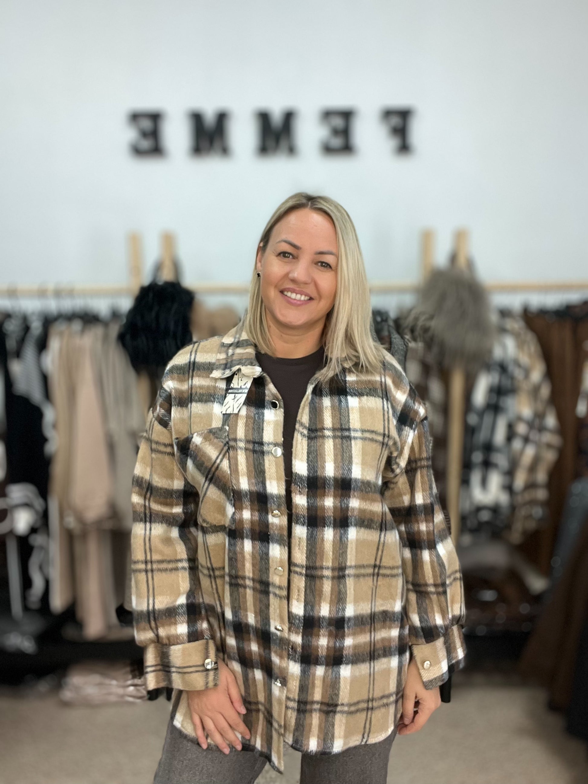 Rūtains krekls brūnos toņos