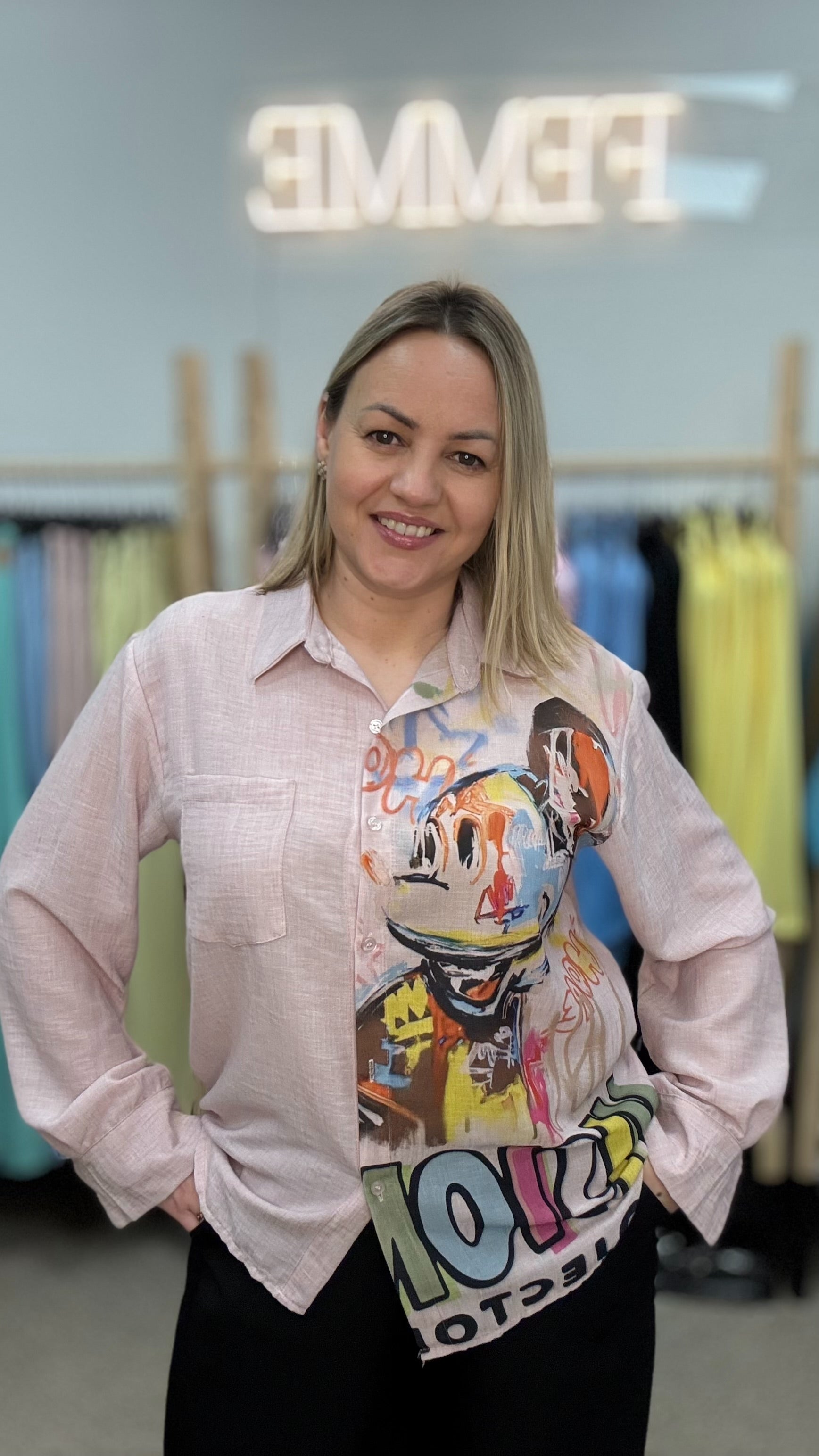 Blūze rozā tonī ar Mikimausa printu